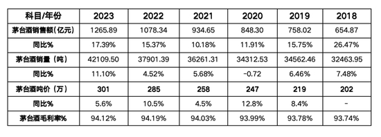 表1.2018-2023年贵州茅台业绩
