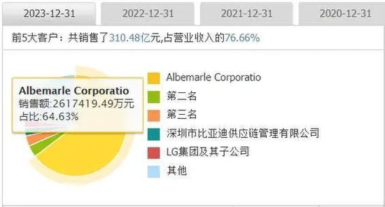 据悉,天齐锂业旗下的Greenbushes矿(澳大利亚)另一大权益方、同为锂盐产业巨头的美国雅保公司(Albemarle Corporatio)履行了承购协议进行大宗采购。这为天齐锂业带来了261.74亿元的营收收入,占到去年营收的64.63%。