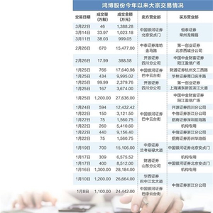 梳理公告可知,1月5日~2月23日,辉熠贸易、寓泰控股累计遭司法划转1.06亿股股份,占鸿博股份总股本的21.17%。以划转当日收盘价计算,对应的市值合计达到24.64亿元。其间仅有34个交易日,辉熠贸易、寓泰控股的减持效率可谓“高效”。进一步探究还可以发现,辉熠贸易、寓泰控股遭司法划转的股份,受让人已经通过大宗交易出售,大宗交易的受让方则极有可能已通过集中竞价方式完成抛售。