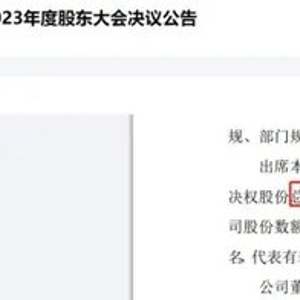 4月24日,中旗股份披露《2023年度股东大会决议公告》,其中出席会议股东人数、代表有效表决权的股份总数和占比、现场出席股东大会人数均以“?”代替。