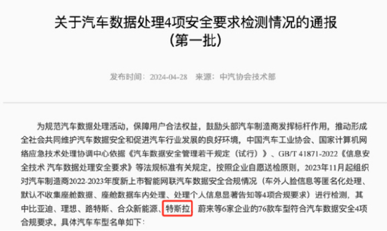 特斯拉在中国通过了一项监管里程碑。中国汽车工业协会、国家计算机网络应急技术处理协调中心发布《关于汽车数据处理4项安全要求检测情况的通报(第一批)》,特斯拉上海超级工厂生产的车型全部符合合规要求。特斯拉因此成为首批获得国家权威的车辆数据检测的企业,更是唯一一家符合合规要求的外资企业。因此,各地已经陆续解除了对特斯拉的禁停进行要求。