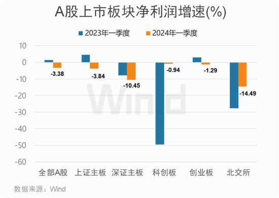 净利润增速方面,各上市板块一季度业绩均出现不同程度的下滑,其中科创板净利润降幅相对较小。