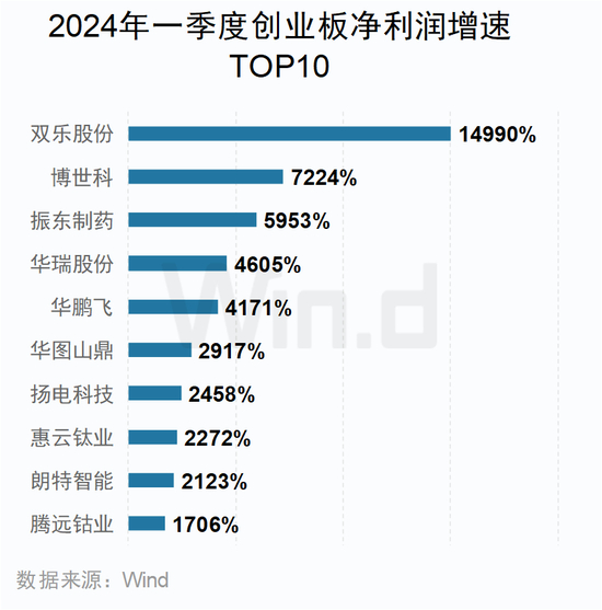 创业板企业中,双乐股份以近150倍的净利润增速稳居榜单第一。