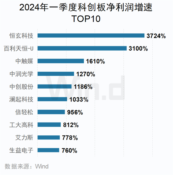 科创板方面,恒玄科技净利润增速超过37倍,位居第一。