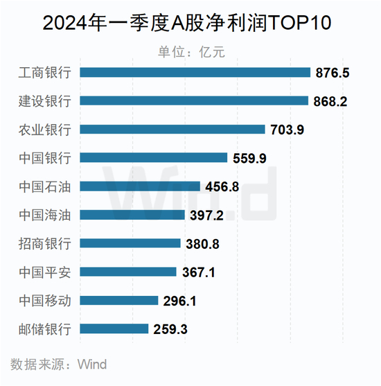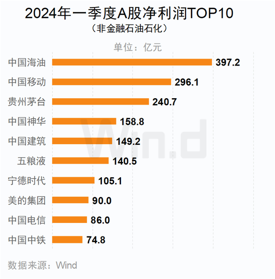 一季度,工行、建行两大行净利润均超过850亿,且净利润前10名中有6家是银行。剔除金融及石油石化企业后,中国海油以397.2亿元的盈利位居第一。