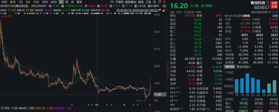 单从股价上看,此前方秀宝减持春光科技区间的最低价也有16.32元/股,最高价甚至达到32.51元/股。而2022年二季度以来,春光科技的股价就一直在15元/股上下震荡,2024年初更是创下历史新低,一度仅有7.72元/股。这个数字甚至低于方秀宝入股的成本线。
