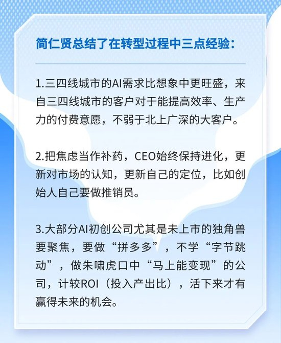 转型并不比再来一次创业更简单。目前,处于自救中的竹间智能虽然还未能彻底摆脱困境,但简仁贤总结了在转型过程中的三点经验: