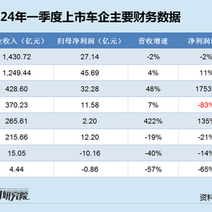 进入5月,各家A股上市乘用车企一季报全部披露完毕,半数车企营收同比下滑,过半车企净利润下滑,日趋激烈的价格战加速了业内两极分化。其中,长安汽车在营收基本持平的情况下,净利润大降超8成,增速位列最末。