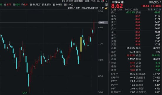中钢天源(002057)四氧化三锰的年产能达5.5万吨,是全球主要的高纯四氧化三锰生产企业。今日股价上涨5.38%。