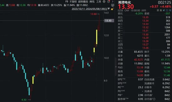 湘潭电化(002125)电解二氧化锰年产能12.2万吨,是电解二氧化锰行业发展历史最悠久的企业。该公司今日股价上涨4.48%。此前已连续多日上涨。