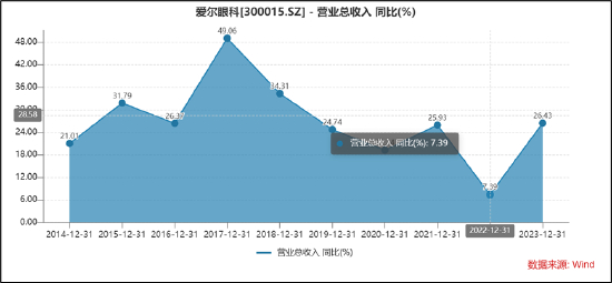需要指出的是,在并购模式驱动下,爱尔眼科业绩常年维持在20%以上的增长上。