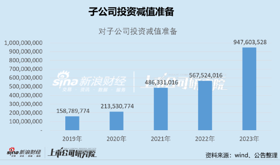 如此之高的商誉,当高溢价并购的标的出现减值时,相关减值计提将会对公司业绩产生较大冲击。截止2023年年末,公司的商誉期末余额为80.65亿元,目前净值为65亿元,公司相关商誉减值计提金额超15亿元。值得注意的是,公司对子公司投资的资产减值准备呈现出逐年增加之势。