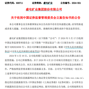 盛屯矿业公告称,5月17日收到中国证监会的《立案告知书》,因公司涉嫌信息披露违法违规,根据《中华人民共和国证券法》《中华人民共和国行政处罚法》等法律法规,中国证监会决定对公司立案。