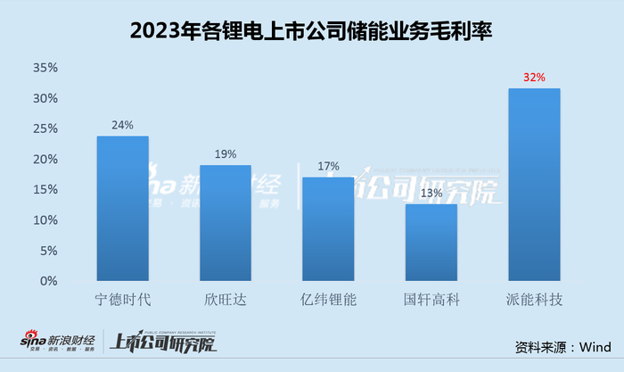 Wind数据显示,派能科技近三年的毛利率分别为29.73%、34.11%和31.65%,显著高于行业龙头宁德时代储能产品同期28.52%、17.01%和23.79%的毛利率水平。