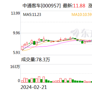 截至5月21日收盘,中通客车报11.88元,涨幅10%,市值70.44亿元。数据显示,截至3月31日,中通客车股东户数为109122户。