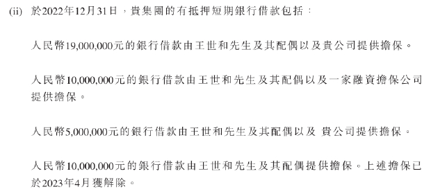 因此,招股书中一脉阳光表示,“鉴于我们所采取的上述措施,董事认为,王先生或顾先生均无法对本集团施加且继续被限制对本集团施加任何具意义的影响。”然而,事实上,直至2022年,顾军军、王世和及其配偶仍在为一脉阳光的短期借款、长期借款和来自融资租赁公司的贷款提供担保,具体如下图所示。