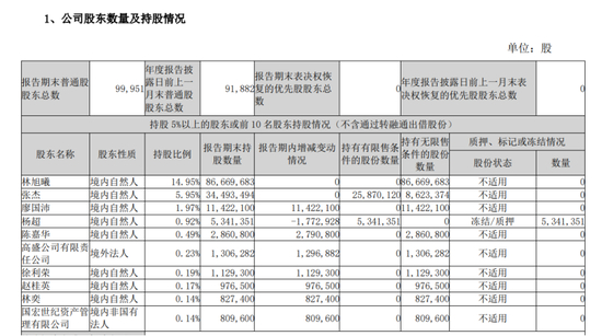 2020年,张杰仍减持了567.5万股,此后几年,张杰、林旭曦均无减持动作。根据2023年报显示,林旭曦持股8666.9万股,持股比例14.95%,为第一大股东,其次为张杰,持股3449.3万股,持股比例5.95%。