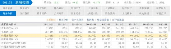 2019年新城控股销售额为2708亿元,是迄今为止的最高业绩。而到2023年,其年销售额已经下滑至800亿元,行业排名掉出前十,归母净利润也从最高峰的152.6亿元(2020年)大幅下滑至7.38亿元(2023年)。