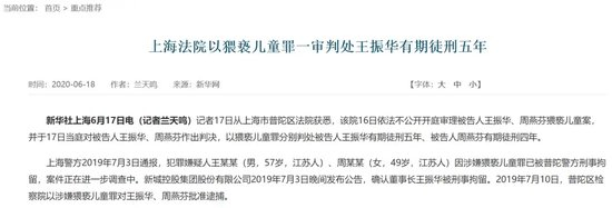 5年前的2019年7月3日,一则震动行业的丑闻横空出世。王振华烈火烹油、鲜花着锦的人生也突然掉头向下,让人们看到了他不为人知的另一面。当天,新城控股(601155.SH)发布公告,确认原董事长王振华被刑事拘留;2019年7月10日,上海市普陀区检察院以涉嫌猥亵儿童罪对王振华批准逮捕;2020年6月17日,王振华因猥亵儿童罪被判处有期徒刑五年。
