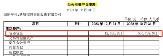 更引起“野马财经”关注的是,新城控股母公司账上的货币资金仅约1300万元,而在2022年财报中还显示约为5.6亿元。