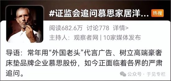 值得注意的是,在慕思的官网早期宣传上,“洋老头”被包装成来自法国的睡眠专家、设计师de Rucci,这也是慕思品牌的英文名字。不过,这位“洋老头”的身份,网友却充满质疑。尤其是在其递交招股书谋求上市时,还被证监会提出质疑,一连串的问题就多达59个,其中最有争议的是:广告中使用的“洋老头”,究竟是谁。