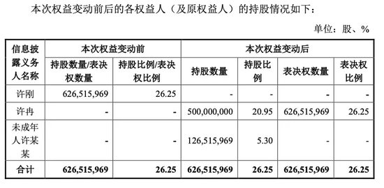 经公证后,许刚生前持有龙佰集团6.27亿股股份(占总股本的26.25%),由其女儿许冉继承5亿股,占公司总股本的20.95%,其儿子,未成年人许某某继承1.27亿股,占公司总股本的5.30%。