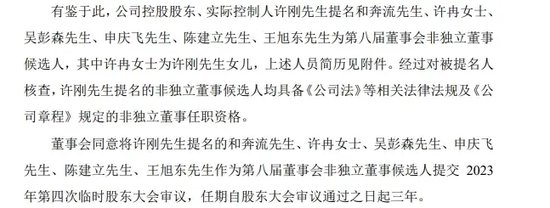 许刚还表示,“我本人许刚退出董事会不会对企业造成什么影响,首先,我还是公司控股股东、实际控制人,这是A股上市公司较为普遍的做法,同时我将继续关注公司重大决策;其次,我的女儿许冉进入董事会,也能代表我的一些想法。”