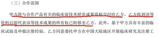 显然,这对于改善翰宇药业未来业绩是一则利好,但此前的一则关于该药品的合作协议却显示,翰宇药业要将该药品的部分技术成果转让,其中关于“转让”的说法引发关注,其技术成果的“所有权”到底属于谁出现了矛盾。