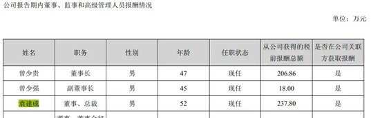 随后在2016年~2018年,袁建成的年薪开始波动,分别为209.98万元、211.62万元、196万元。2019年8月袁建成离任,在离任当年(2019年)的薪酬显示为66.7万元。