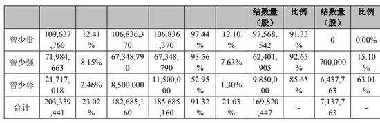 截至该公告日,翰宇药业控股股东、实控人曾少贵、曾少强、曾少彬三人累计持有翰宇药业2.03亿股,持股比例为23.02%。其累计质押持股91.32%,占公司总股本的21.03%。