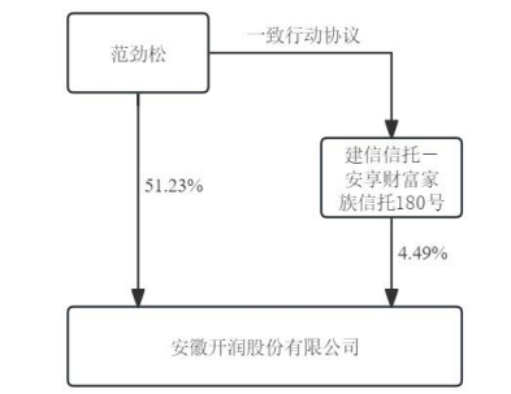 目前公司控股股东及实控人为范劲松,范劲松与建信信托-安享财富家族信托180号为一致行动人。截至2024年一季度末,实控人及家族信托合计持有上市公司55.72%的股份。