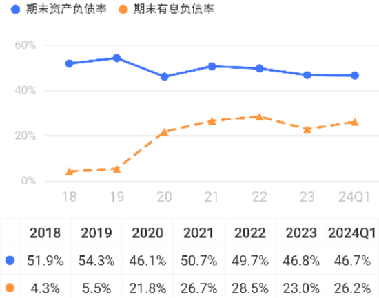 近几年公司有息负债率有一定提升,有息负债主要为长短期借款、一年内到期的非流动负债及应付债券。截至2024年一季度末,有息负债合计9.5亿元,账上货币资金及交易性金融资产合计7.7亿元,资金并不宽裕。