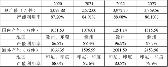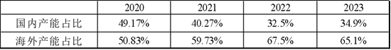 2020年以来,国内产能仅小幅提升,海外产能则出现了翻倍式增长,境内外产能利用率总体维持在高位。