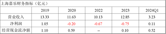 2023年,上海嘉乐的营收为12.9亿元,净利润为负,2024年一季度转正。