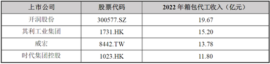 历经多年积累,公司箱包代工收入已领先其他竞争对手(参考2022年收入)。