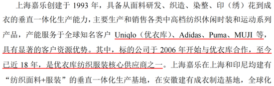 上海嘉乐是优衣库针织服装核心供应商之一,客户还包括Champion、VF集团、Adidas、Puma、MUJI等,生产基地位于上海、安徽和印尼。而公司在印尼、安徽等地也有工厂,布局方向高度一致。