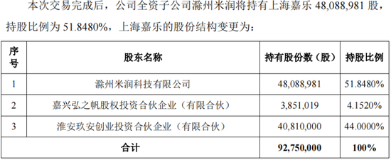 因此,本次交易完成后,滁州米润将持有上海嘉乐51.848%股份,上海嘉乐将成为公司的控股子公司并实现并表。