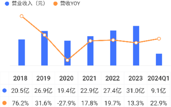 2024年一季度,毛利率为24.2%,净利率为7.8%。