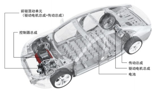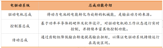 一套电驱动系统主要包含驱动电机总成、控制器总成、传动总成这三大总成,分别担任动力输出、控制及传动的角色。