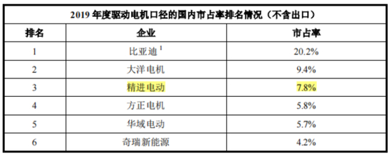 仅以2019年的电驱动系统市场格局来说,比亚迪以20.2%市占率位列第一,大洋电机、精进电动分别以9.4%份额、7.8%份额排在二、三位,显然半路出家厂商并不比始终如一的差。