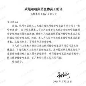但事实证明,企二代继承产业,依旧会面临根基不稳的问题。而网传的这份辞职信,只是娃哈哈人事风波的开始。