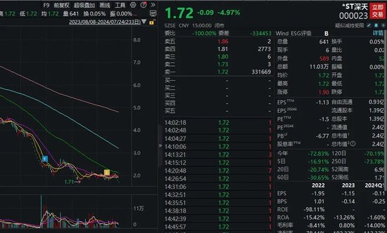 值得注意的是,由于近期市场预期其股价即便在最后两个交易日涨停,市值也无法回到3亿元以上,在最近两个交易日,公司股价牢牢封住跌停,最新股价报1.72元。