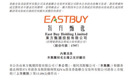东方甄选表示,7月25日,经集团与董宇辉友好讨论之后,董宇辉决定离任。由于董事会认为该品牌本身与董宇辉及其个人知识产权密不可分及考虑离任后使用知识产权的相关风险,董事会认为,随着董宇辉离开,集团将无法继续经营目标公司。