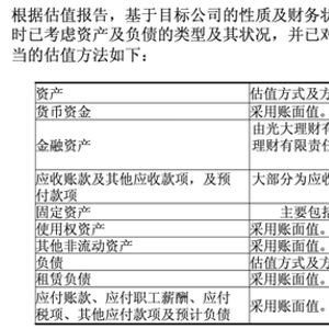 从评估报告中可以看到,估值师采用成本法列出的与辉同行公司的资产包括货币资金、金融资产、应收账款及其他应收款项、固定资产、使用权资产以及其他非流动资产。