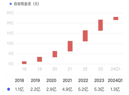 2018-2023年,公司的资本开支不断增加,合计近20亿,但仍具备一定的造血能力,自由现金流合计将近22亿。