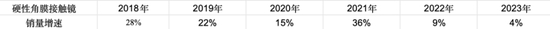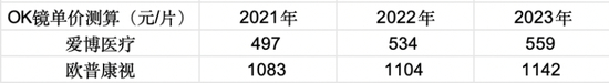 爱博医疗曾说,由于是上市初期,为开拓市场提供了较多试戴片,因此拉低了平均单价。2022年以及2023年,爱博医疗OK镜营收增速分别为51%、21%。2023年爱博医疗OK镜营收为2.2亿,约为公司的1/4。