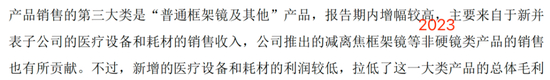 另外减离焦框架镜及其他这一大类在2023年也占了20%左右的营收,但里头包含的业务杂七杂八。拆分增速最快的两年,其中很大一部分来自于投资新增的子公司医疗设备、耗材的销售收入,还有一些批发业务。