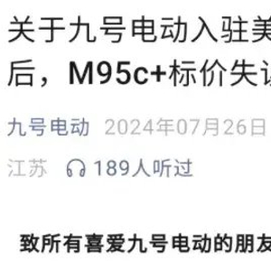 近日,九号电动发文称,由于工作失误,公司在美团平台上错误地将九号电动摩托车M95c+标价设为500元,对此深表歉意。公司承诺,所有下单用户可凭订单信息在指定门店按下单价格提车。