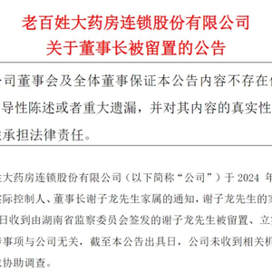 老百姓大药房在7月30日发布的公告中指出,谢子龙所涉事项与公司无关,目前公司尚未收到相关机关通知,也未被要求协助调查。