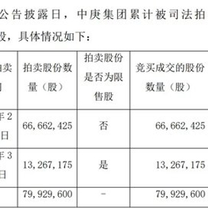 最终,中庚集团累计被司法拍卖竞买共计7992.96万股,占其所持公司股份的97.56%,占公司总股本的34.71%。